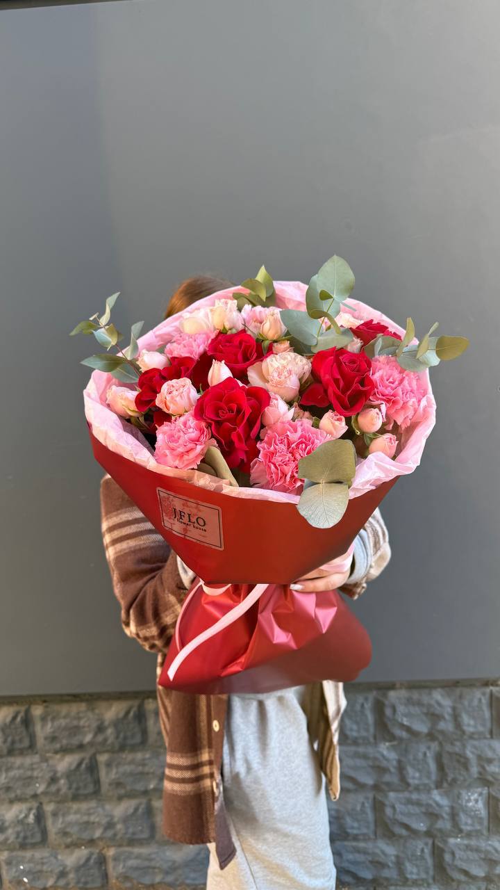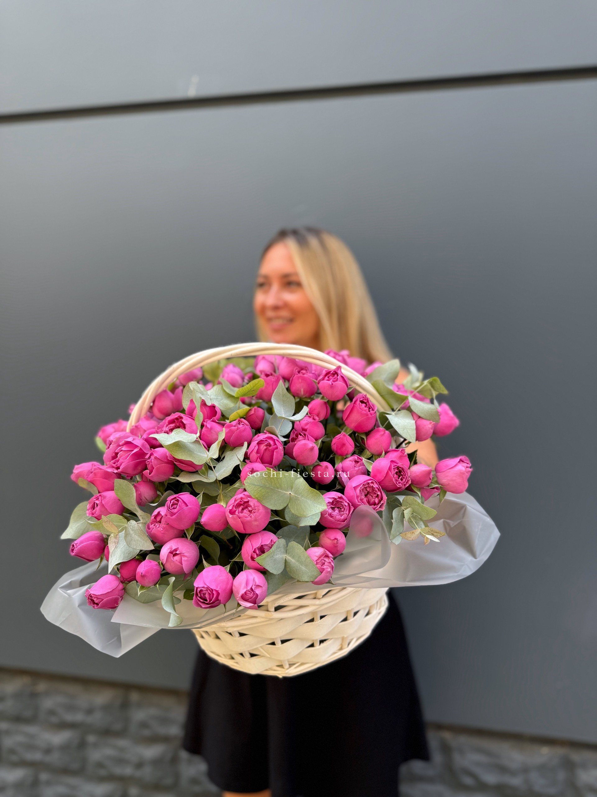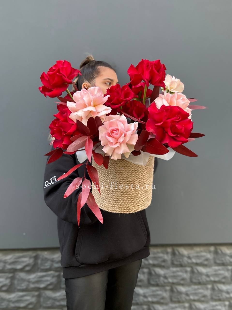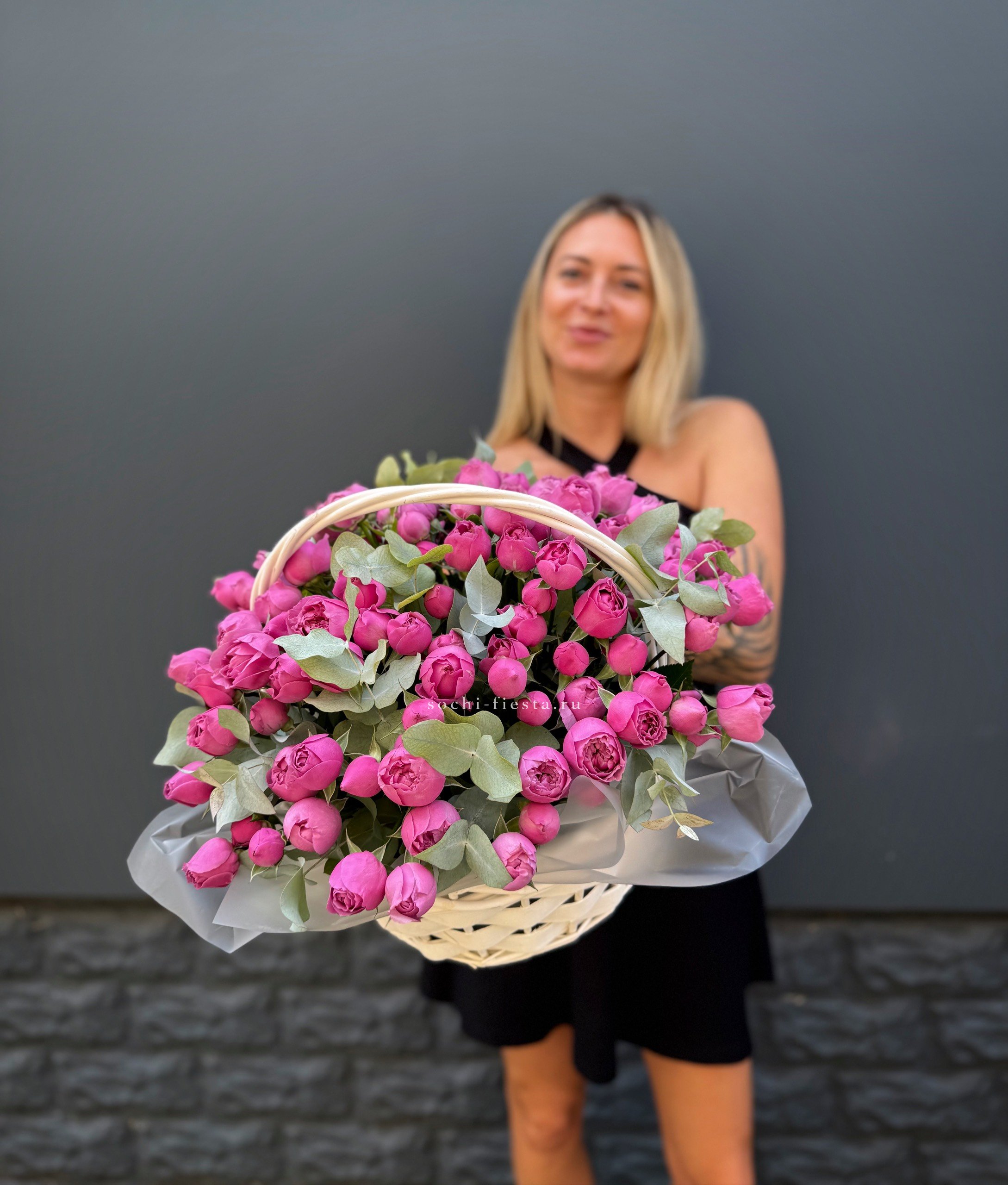 Тысяча и одна роза собраны в объёмную корзину, где каждый белоснежный бутон создаёт плотное облако лепестков. Это композиция, которая заполняет пространство и меняет восприятие комнаты одним своим присутствием.
