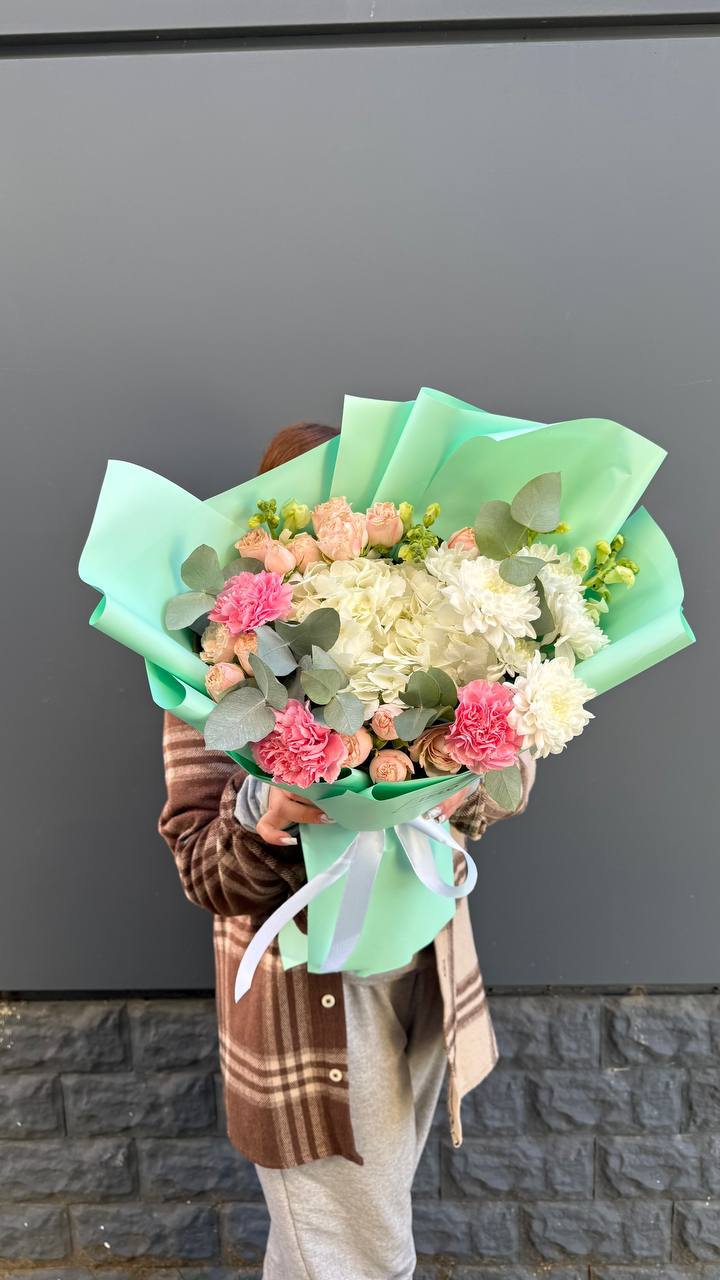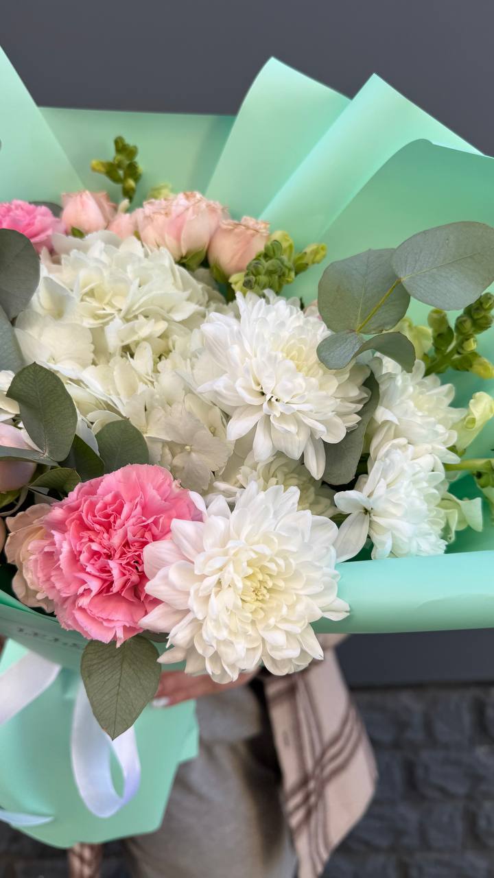 Сто одна хризантема выстраивается в масштабную композицию с впечатляющим присутствием. Плотная структура и высота создают эффект цветочной инсталляции в пространстве.