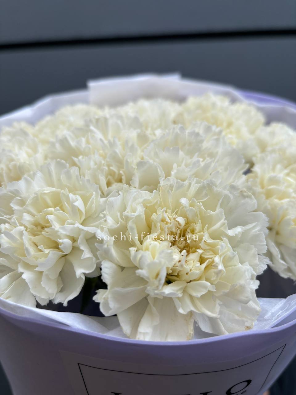 Одиннадцать крупных хризантем Cassiopeia собраны в плотный букет с выразительным объёмом. Каждый бутон раскрыт полностью, создавая насыщенную текстуру и живую игру света на лепестках.