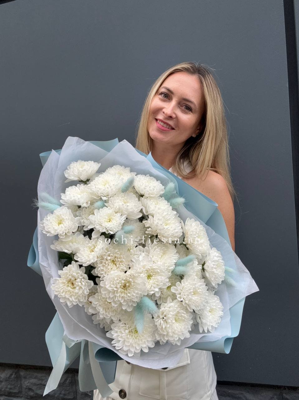 хризантема кустовая - 9 шт., лагурус, пленка, лента.