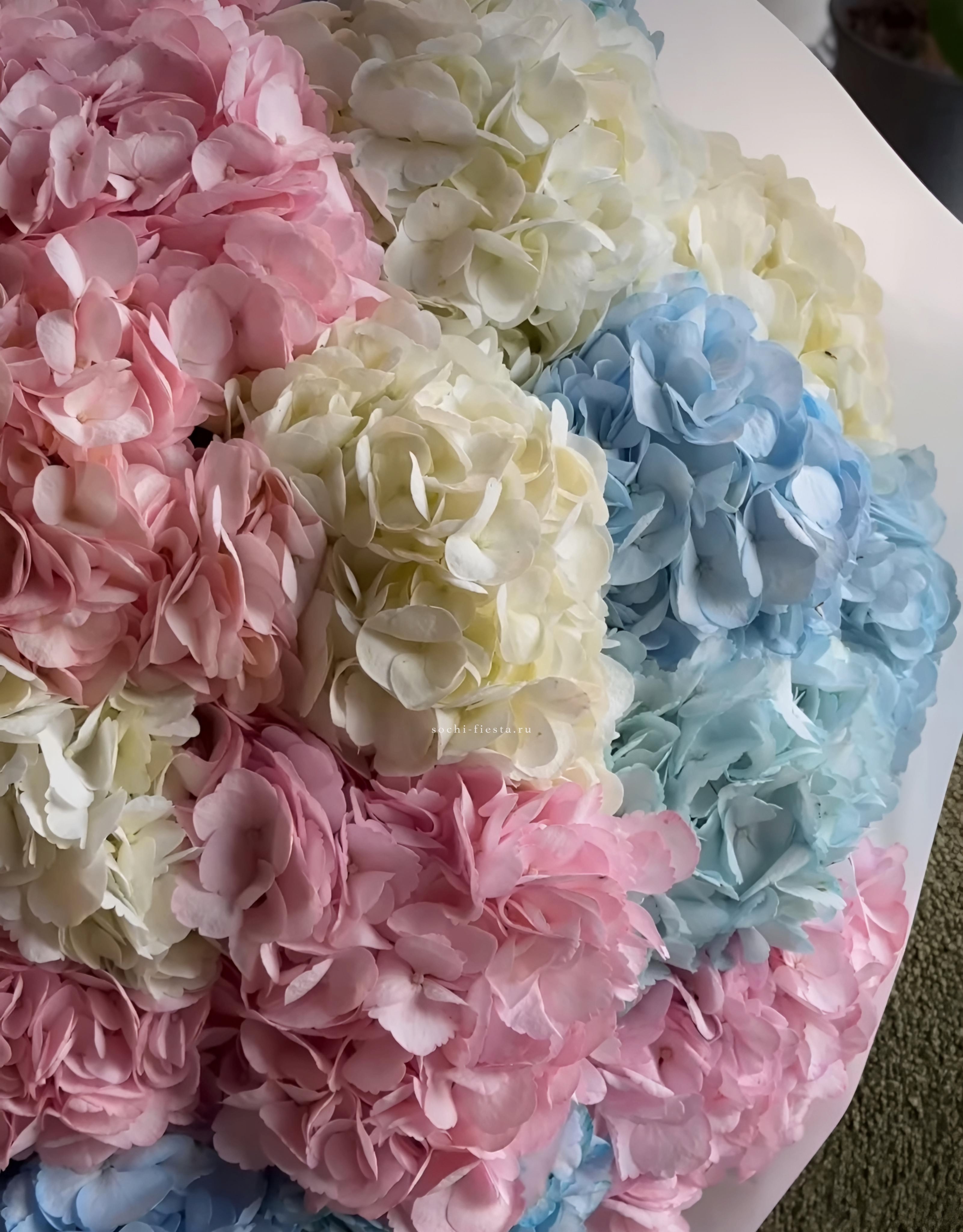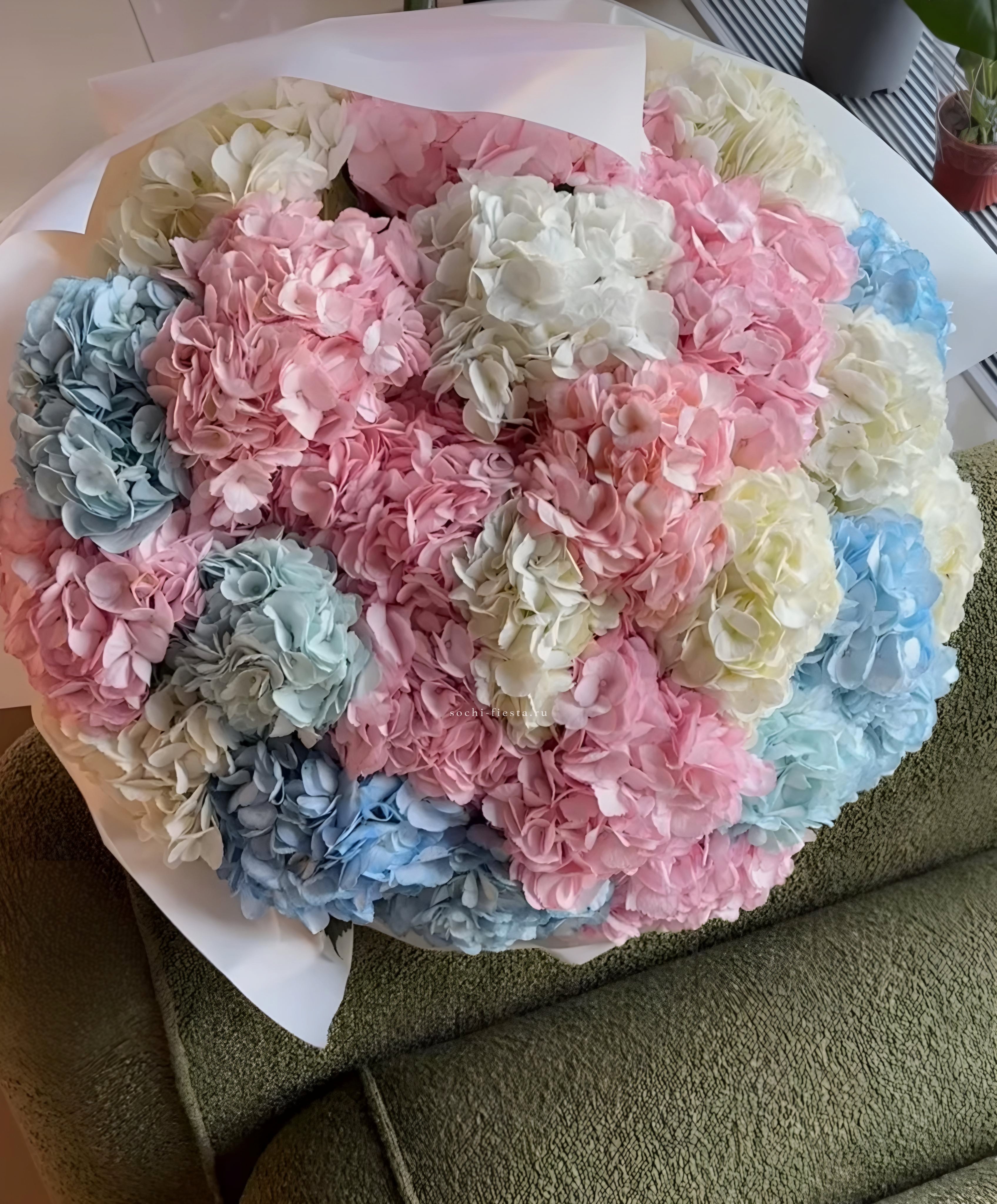 Яркие малиновые соцветия собраны в пышный букет с характерным объёмом. Дизайнерская упаковка подхватывает насыщенный тон и создаёт завершённую форму.