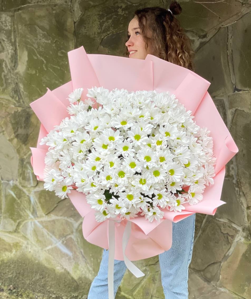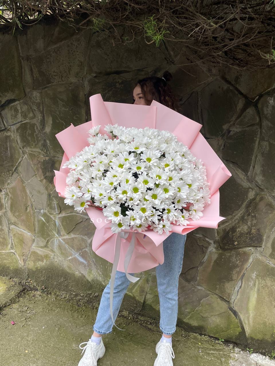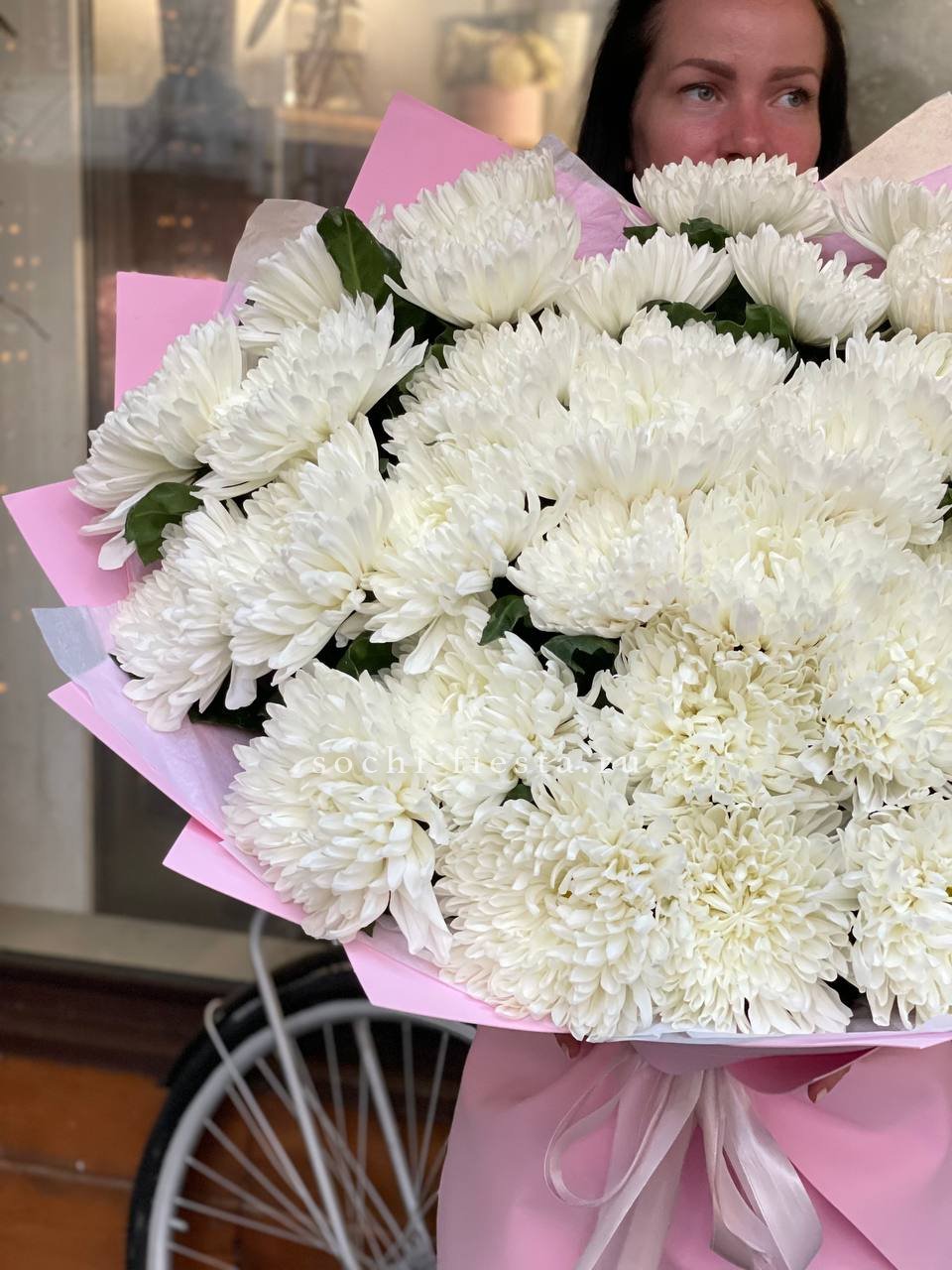 хризантемы - 101 шт., лента, фоамиран, дизайнерская пленка.