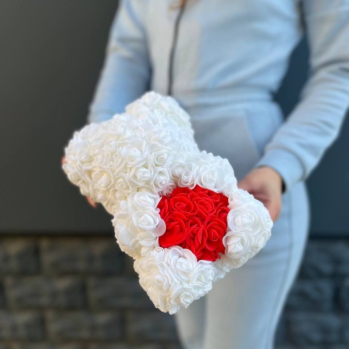 Медведь из роз красный