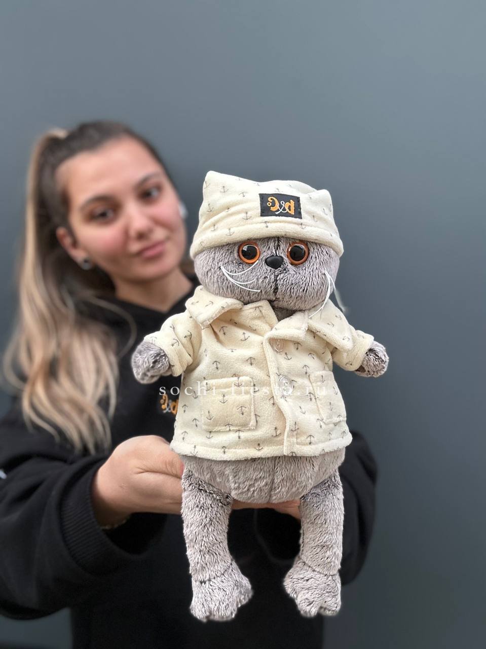 Кот Басик в мягкой пижаме с характерной серой мордочкой и добрым взглядом. Текстильная игрушка с проработанными деталями, которая легко вписывается в любой интерьер и радует при каждой встрече.
