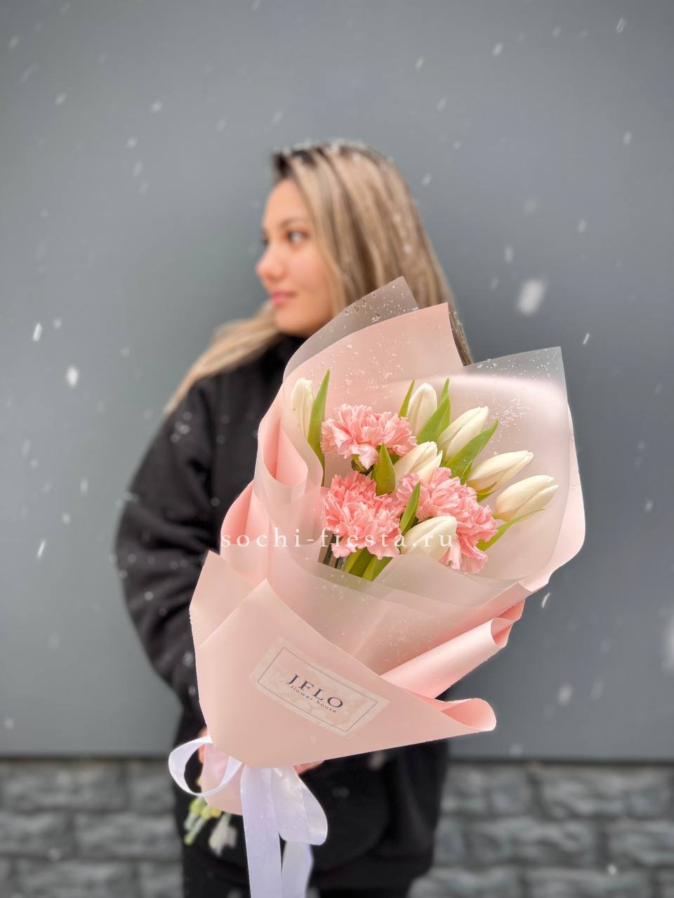 Воздушная сладость с ароматом фиалки в формате цветочной композиции. Каждый лепесток выполнен из натурального зефира и окрашен вручную. Дополнение к букету для тех, кто ценит красоту в деталях.