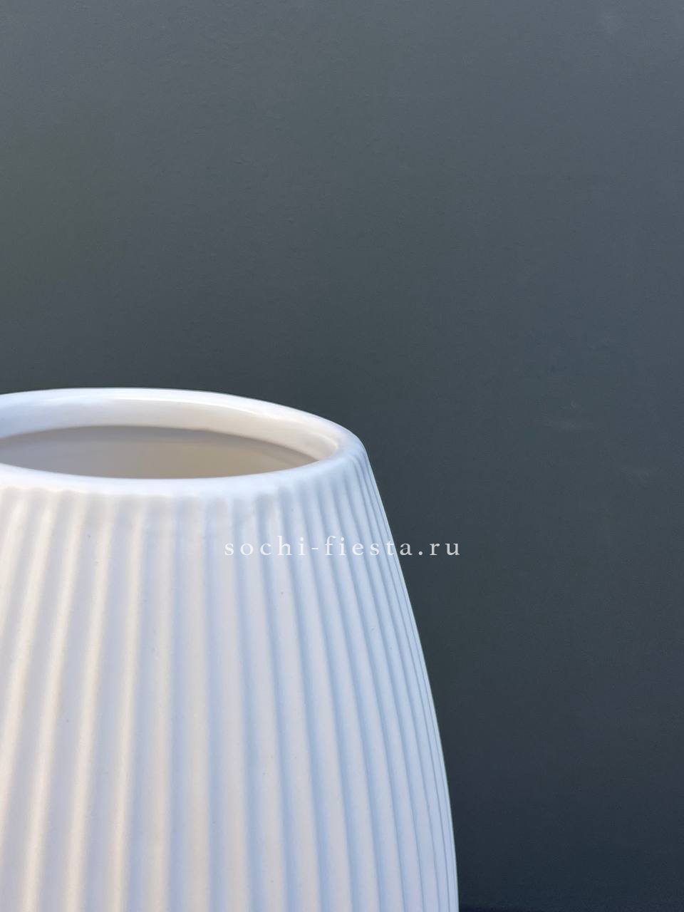Белая керамическая ваза с лаконичными формами и универсальным характером. Подходит для живых букетов и сухоцветов, легко вписывается в разные интерьерные решения. Объем позволяет размещать композиции из нескольких стеблей.