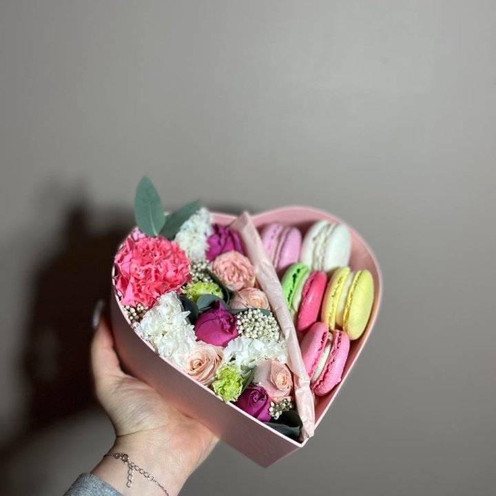 Бокс-сердце с макаронс