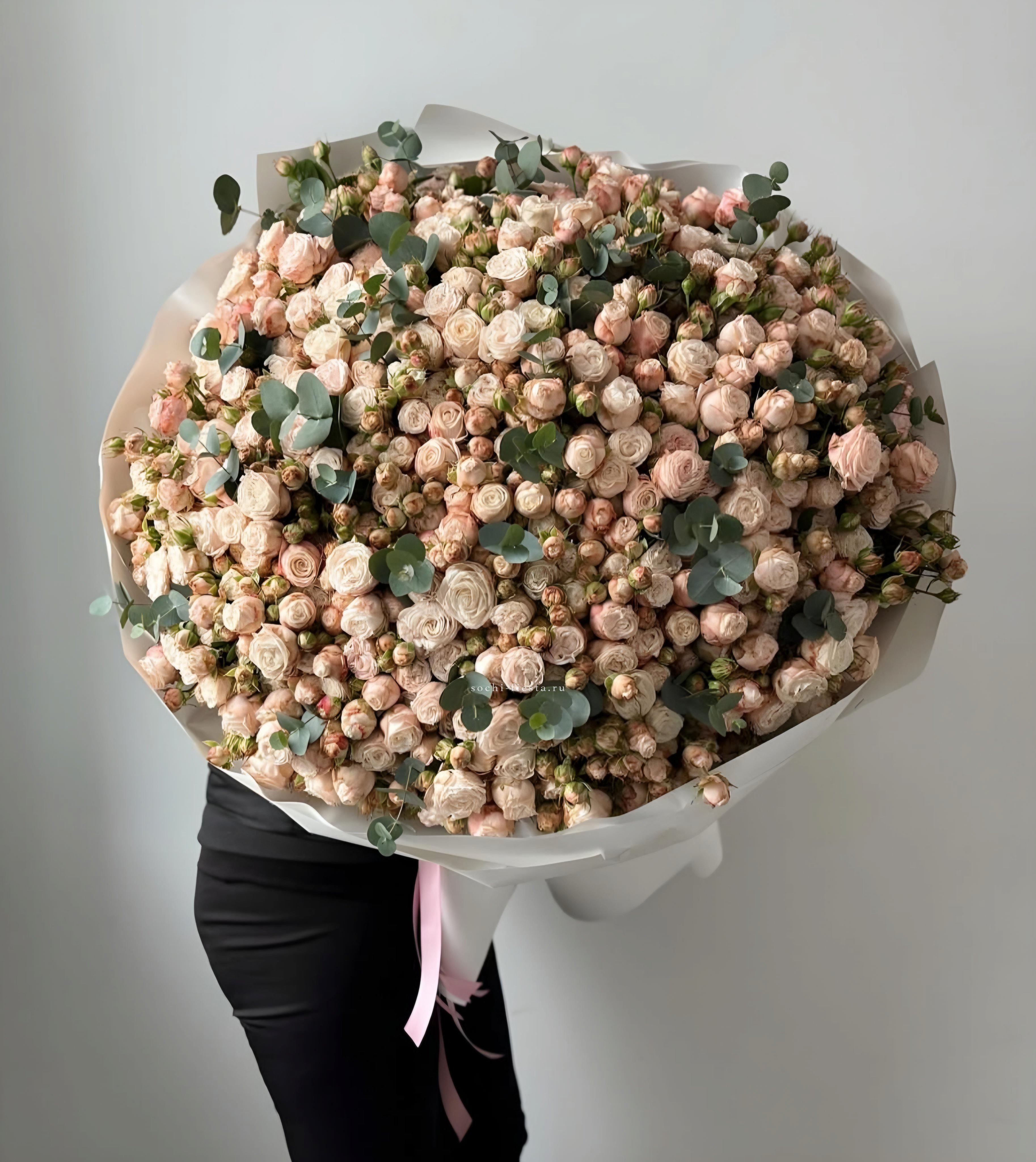 Голубая гортензия задает тон всей композиции, а яркие герберы и диантусы добавляют живости. Компактная форма в сумочке удобна для вручения и не требует вазы.