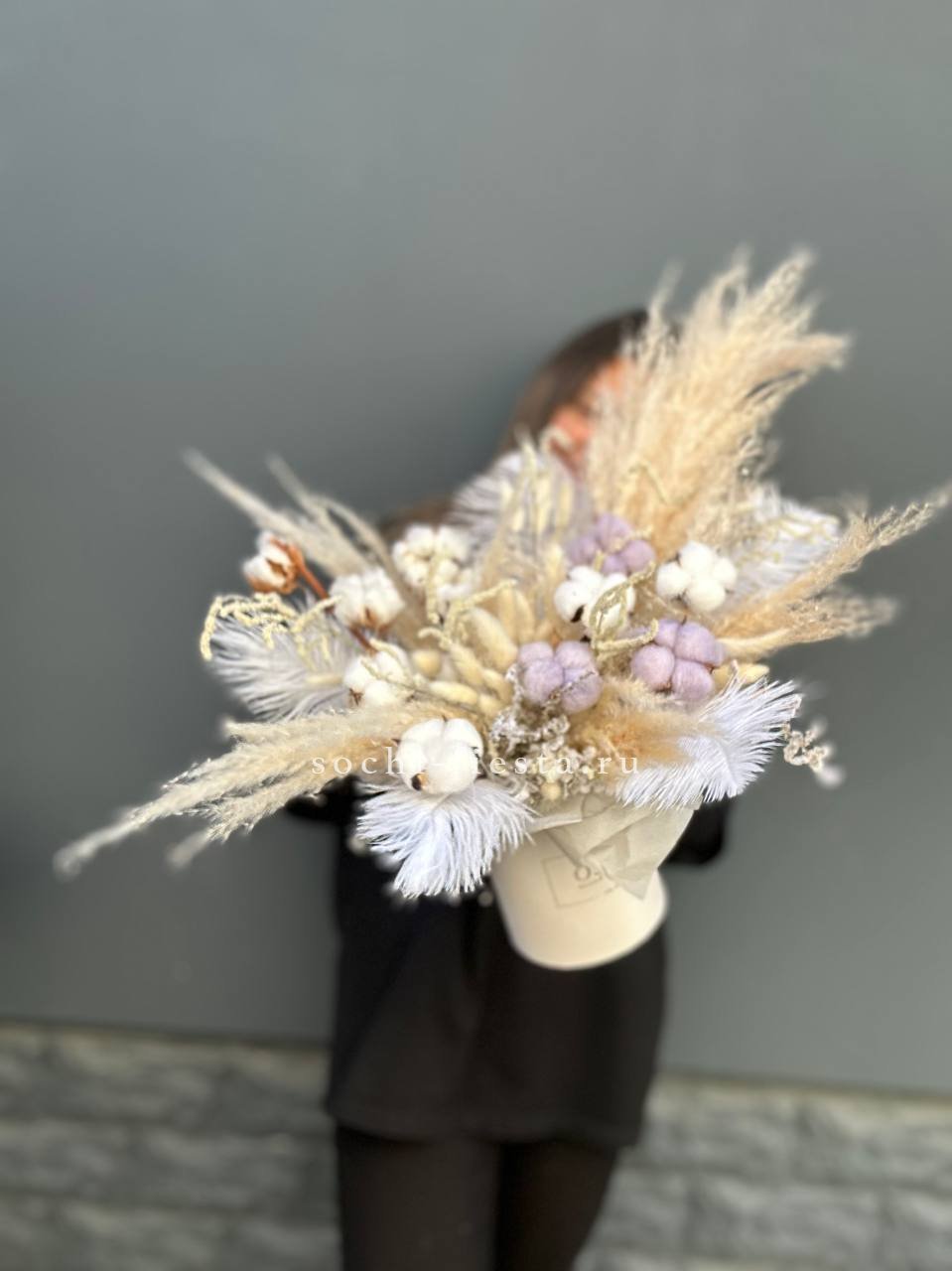 Корзина вмещает двести один бутон, образующих пышное цветочное полотно. Классическая форма подачи позволяет разместить композицию в любом пространстве без необходимости искать вазу. Впечатляющий объем для важных событий.