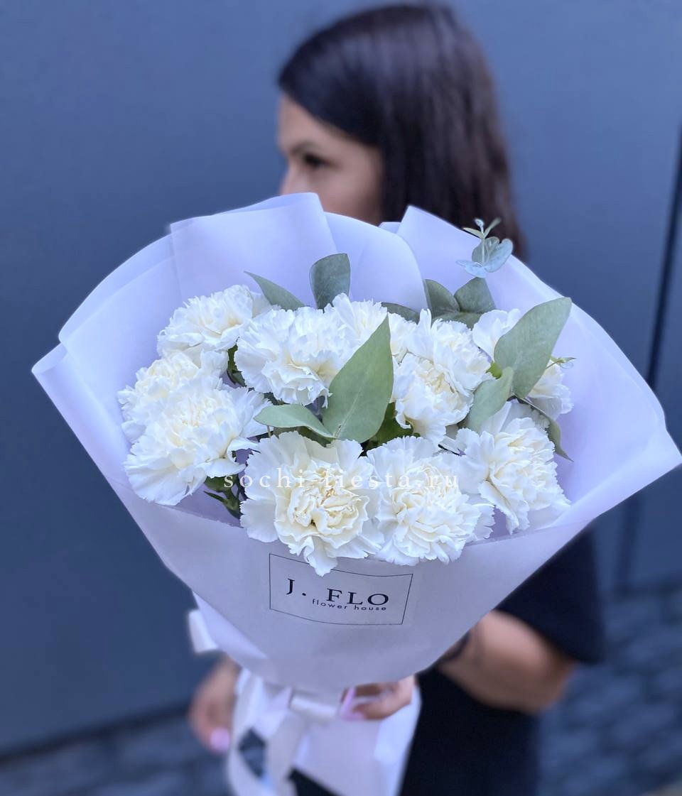 мисти баблс, бомбастик, эустома, диантус, эвкалипт, корзина маленькая.