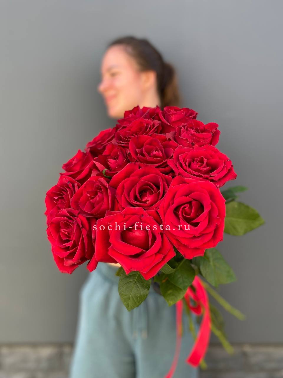 15 красных роз под ленту