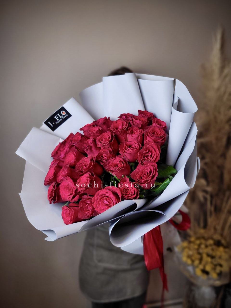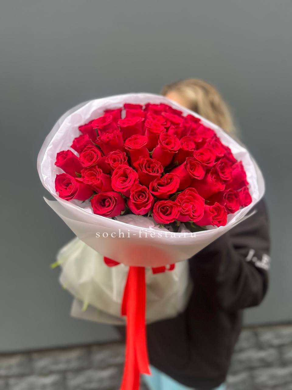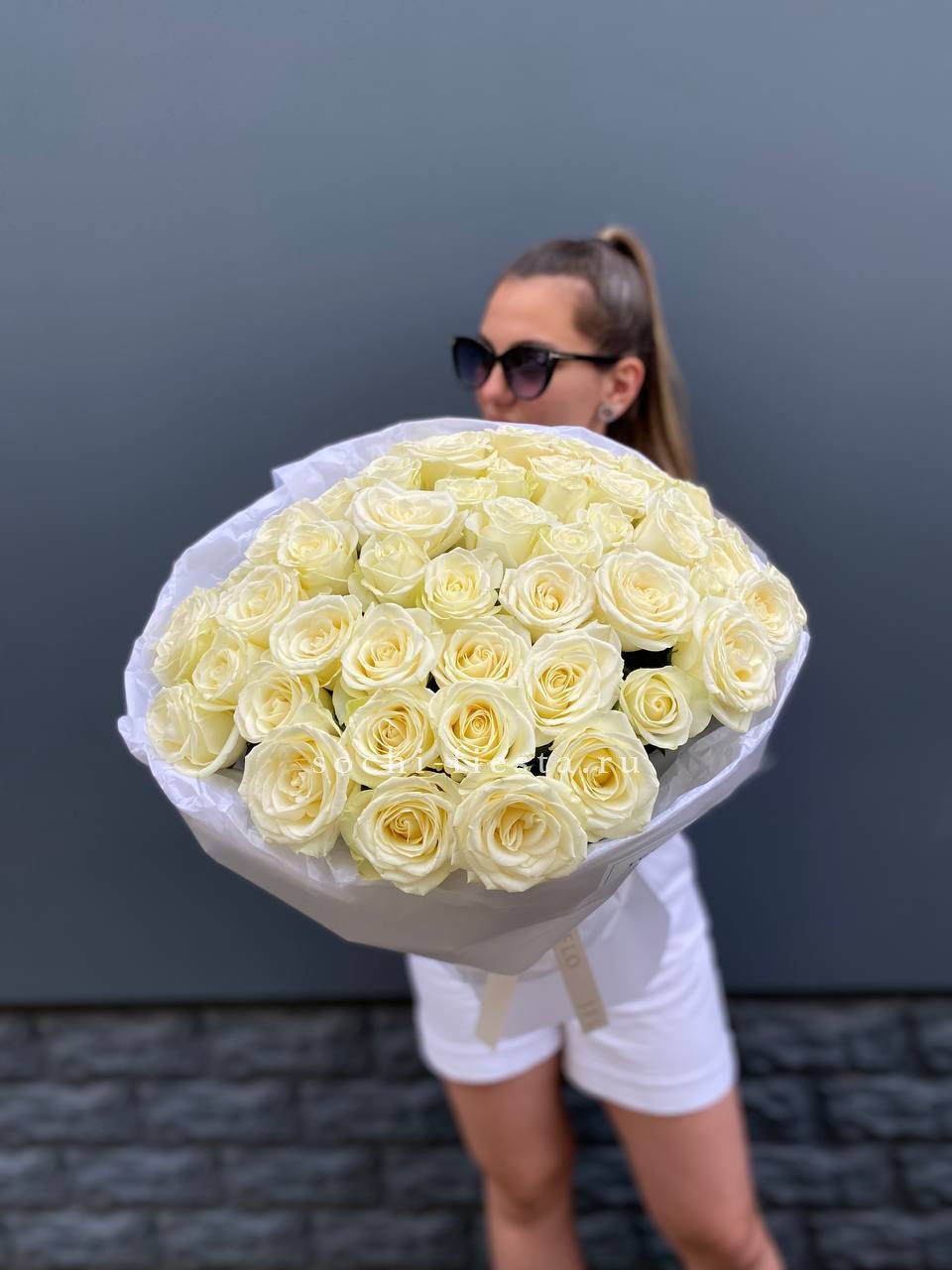 белые розы 35 шт., лента, упаковка на выборВы можете выбрать любое количество.