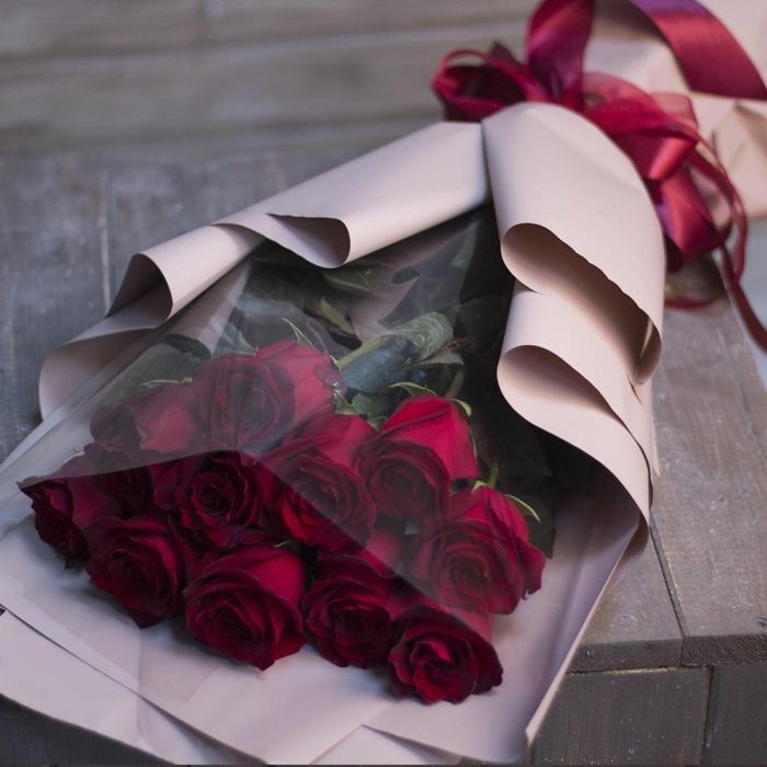 Алые розы с бархатистыми лепестками в авторской упаковке. Вы выбираете количество стеблей и получаете букет, который говорит без слов о силе чувств.