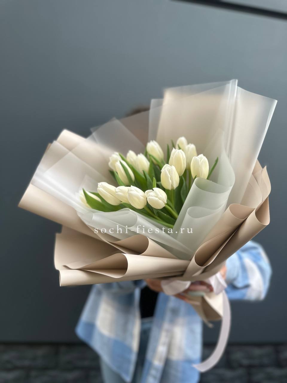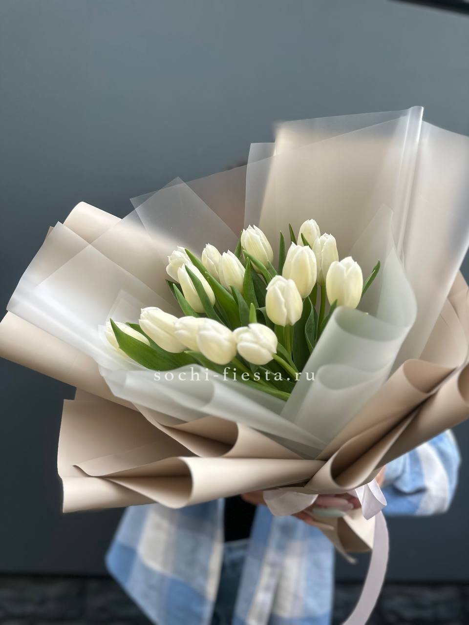 Букет из 15 белых тюльпанов