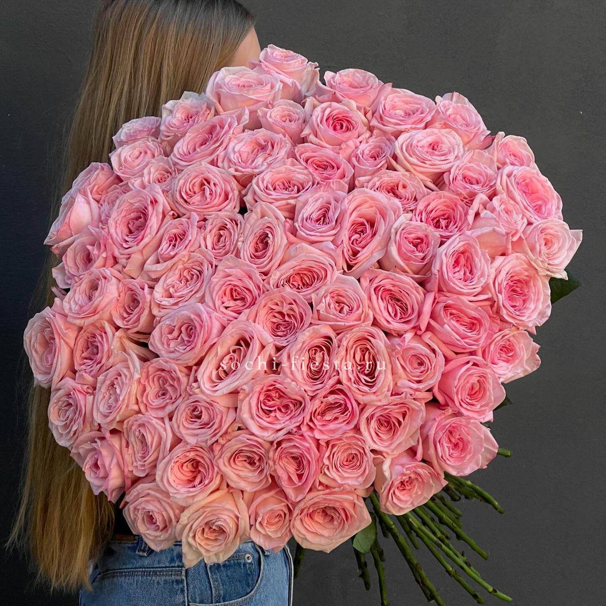 розовые розы - количество на выбор, авторская упаковка, лента.