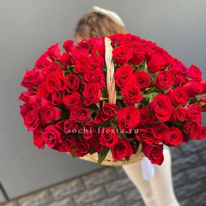 101 красная роза в корзине