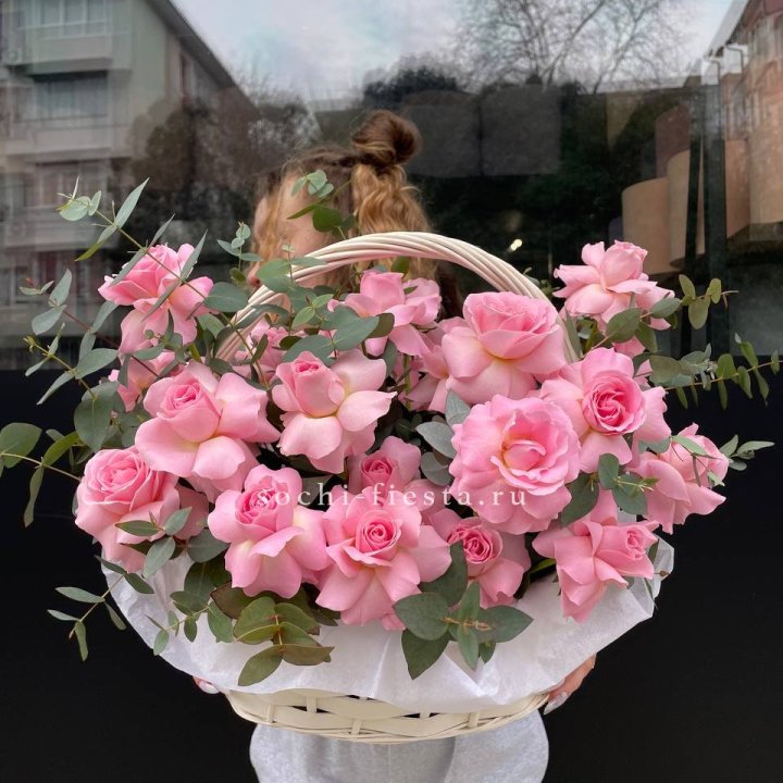 25 роз в цветочной корзине