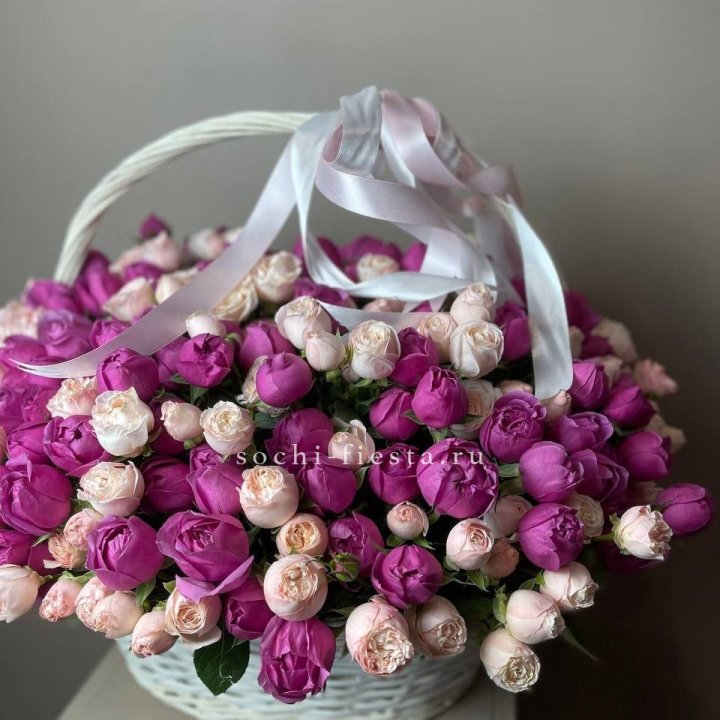 Корзина кустовых пионовидных роз