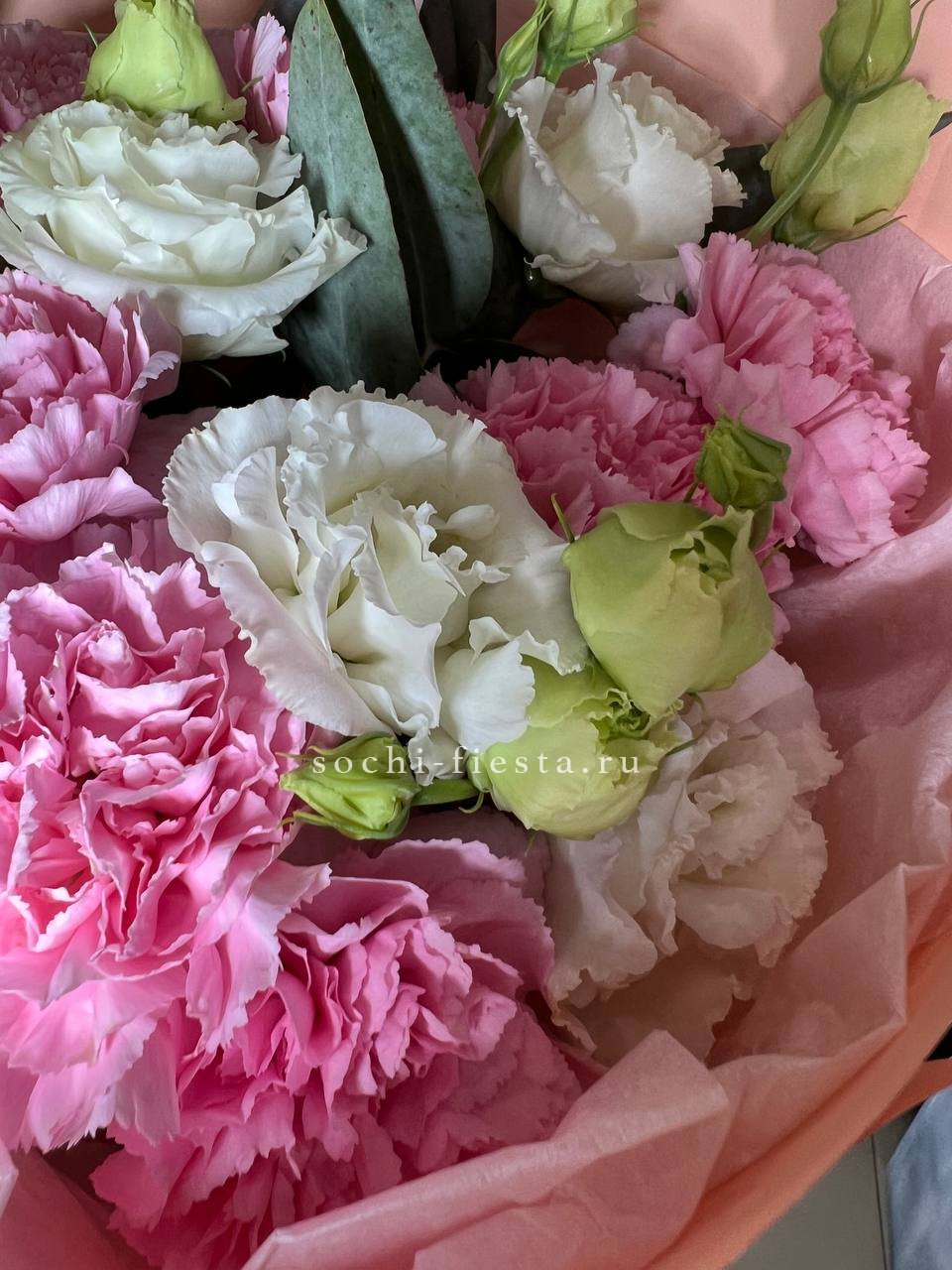 Для заказа товара "Букет гвоздик и эустом "Сири"" с доставкой в Новом Уренгое нажмите