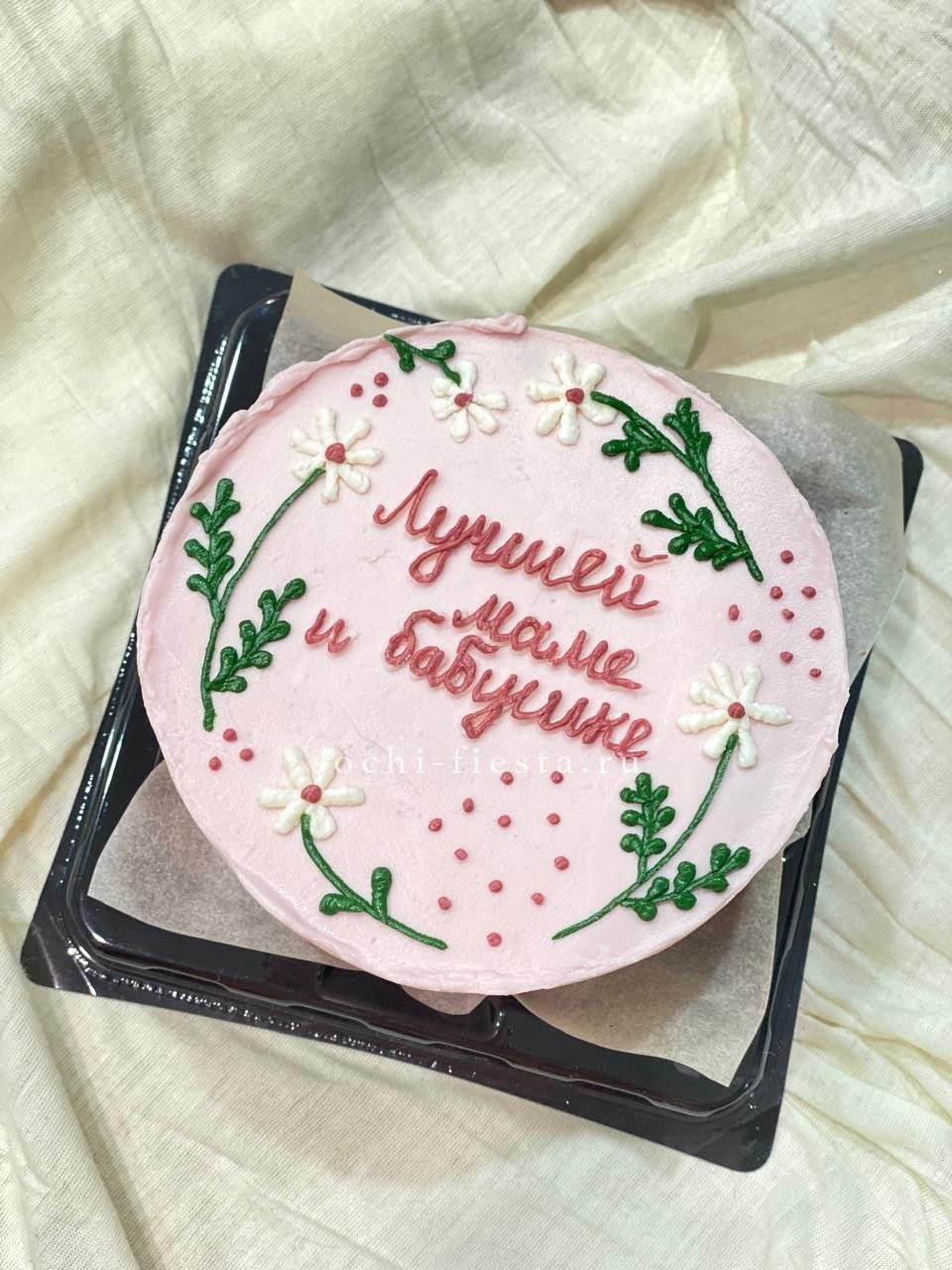 Миниатюрный торт с яркой надписью и домашним теплом в каждом слое. Крем держит форму, а бисквит остается влажным благодаря небольшому объему и свежести выпечки. Три начинки на выбор позволяют угадать любимый вкус и передать заботу через сладкий сюрприз.